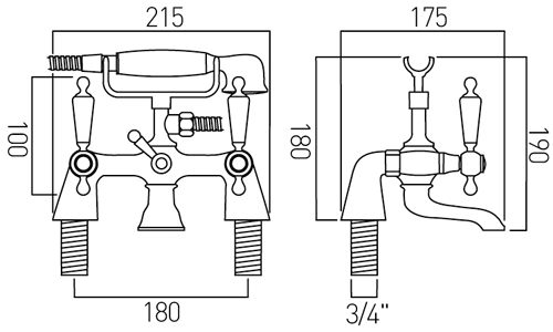 Kensington traditional pillar mounted bath shower mixer tap in antique gold and white with shower kit.