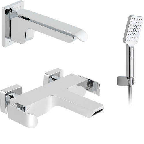 Vado Kovera wall mounted bath shower mixer tap in chrome with shower kit and wall mounted basin mixer tap pack.