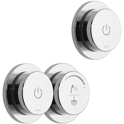 Vado Sensori SmartDial thermostatic shower valve in chrome with two outlets, ambient LED lighting, Sky round ceiling mounted shower head, slide rail kit and remote control.