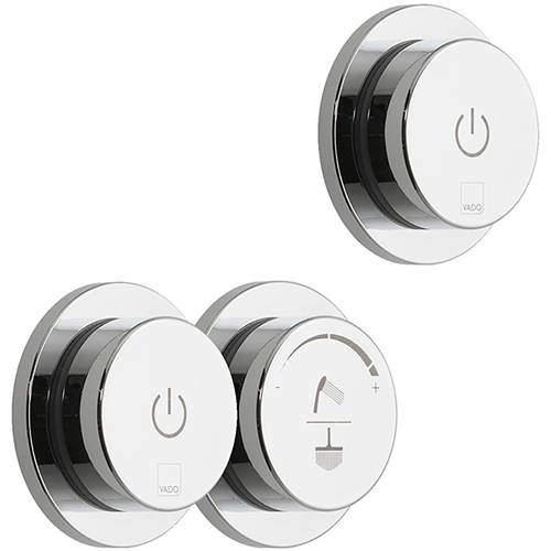 Vado Sensori SmartDial thermostatic shower valve in chrome with two outlets, ambient LED lighting and remote control.