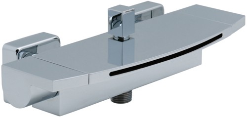 Wall mounted waterfall bath shower mixer tap in chrome.