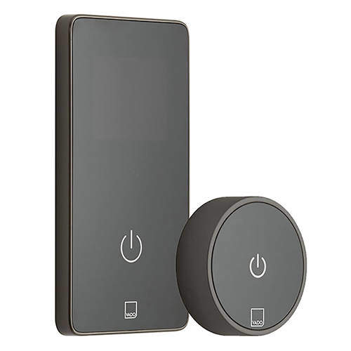 Vado Sensori SmartTouch shower in black with two outlets, colour LED display and wireless remote control.