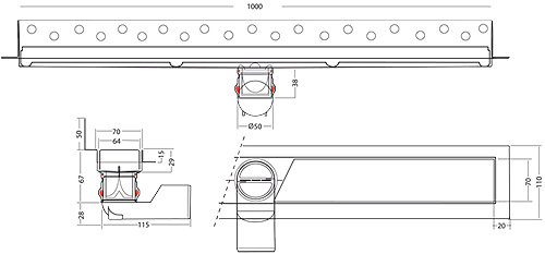 Larger image of VDB Channel Drains Premium Shower Channel, Wall Flange 1000x70mm.Example image of VDB Channel Drains Premium Shower Channel, Wall Flange 1000x70mm.Example image of VDB Channel Drains Premium Shower Channel, Wall Flange 1000x70mm.Technical image of VDB Channel Drains Premium Shower Channel, Wall Flange 1000x70mm.