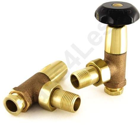Bradley 1/2" angled radiator valves in brass and bronze with lacquered finish (pair).
