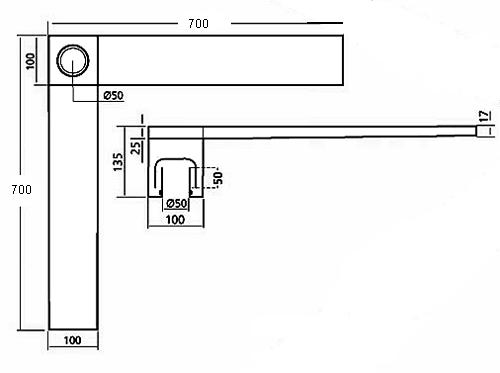 Wetroom corner shower drain with side outlet. Size 700x700x105mm.