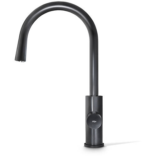 Zip Celsius Arc All-In-One kitchen tap in matt black finish with filtered boiling hot and chilled water. Plus standard hot and cold water (4 x water types).